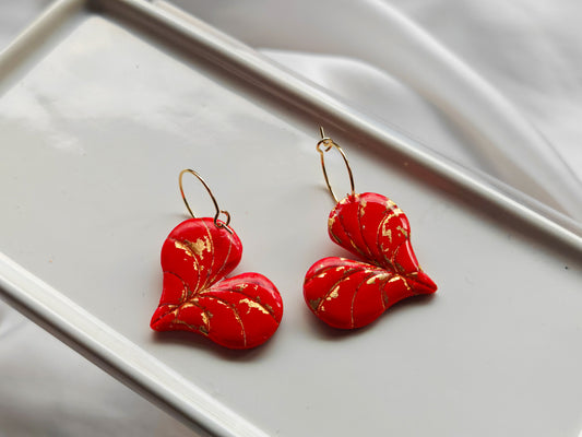 Red and gold heart leaf earrings