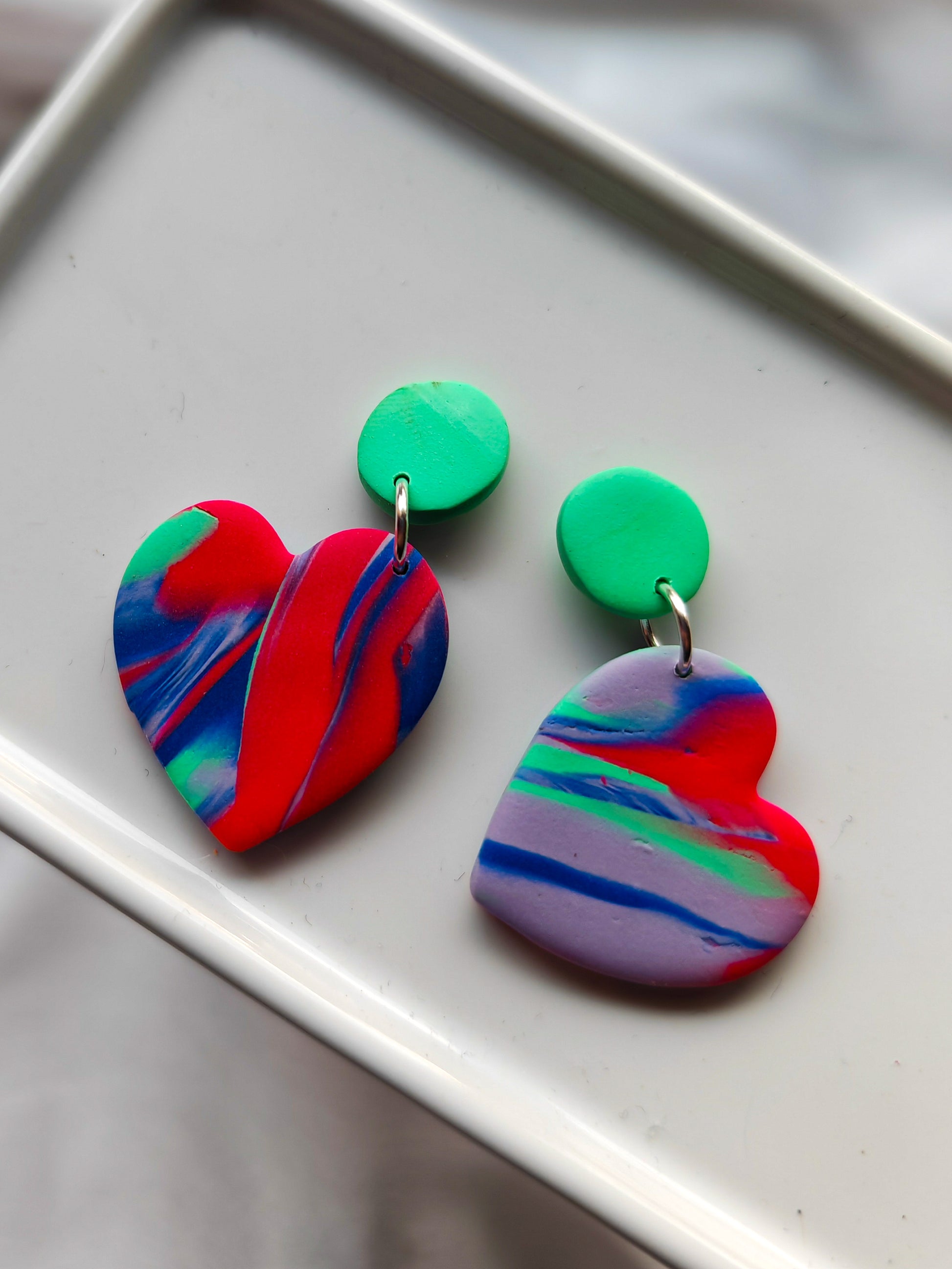 Marbled heart dangle earrings