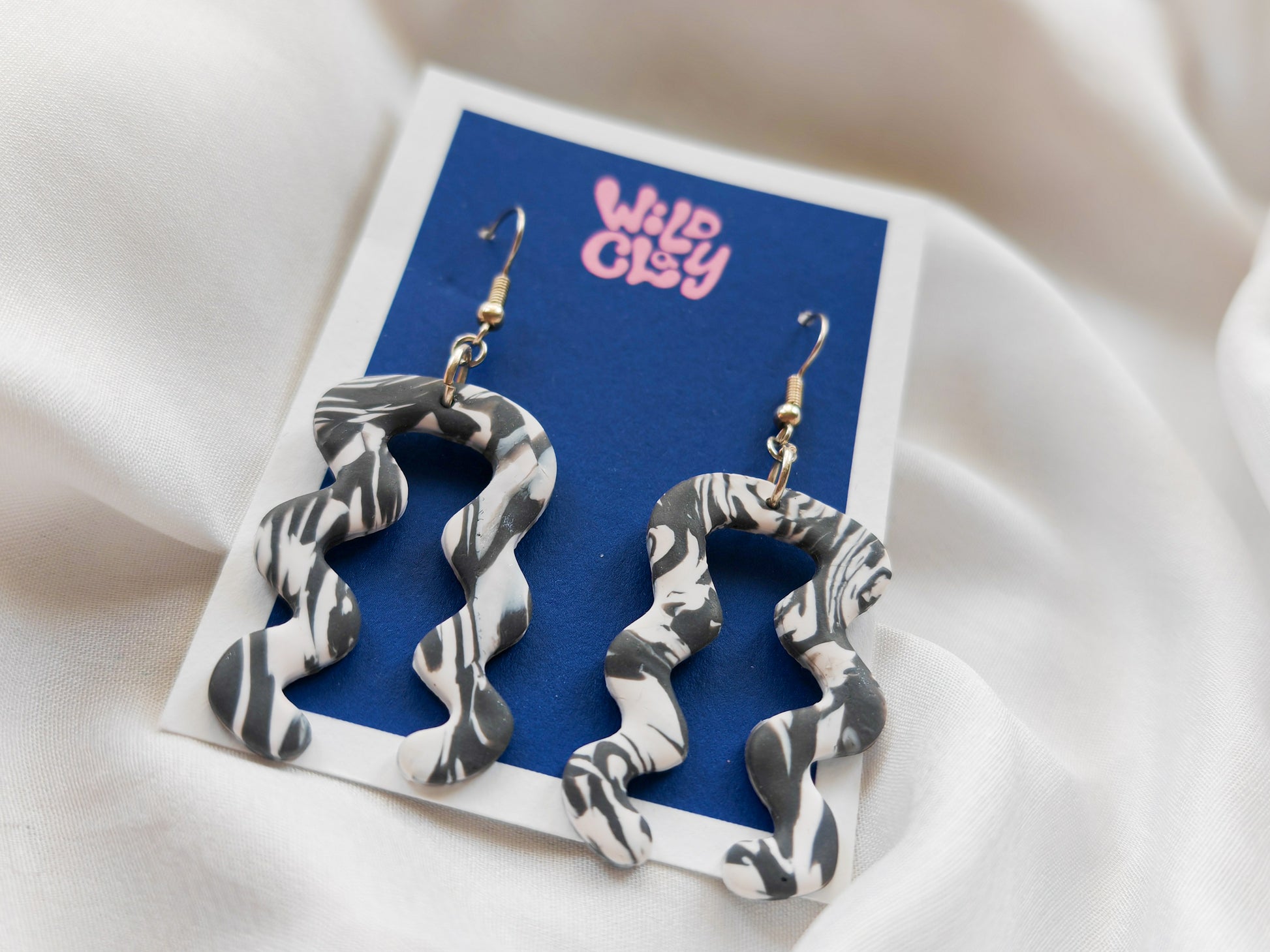All earrings are completely unique and handmade by me in my home studio in Bristol, UK. Every single pair is different and you will receive the exact pair shown in the photos.