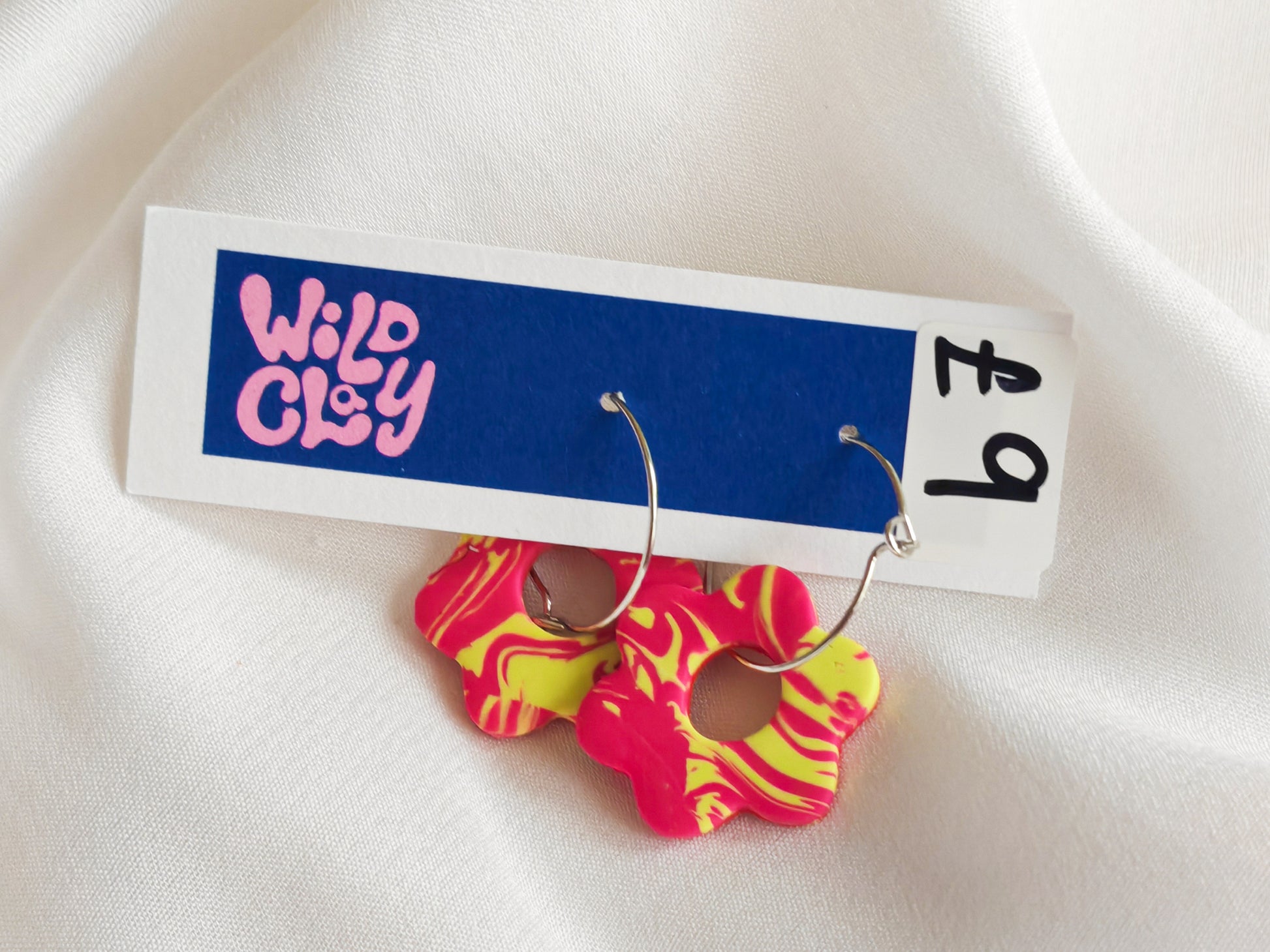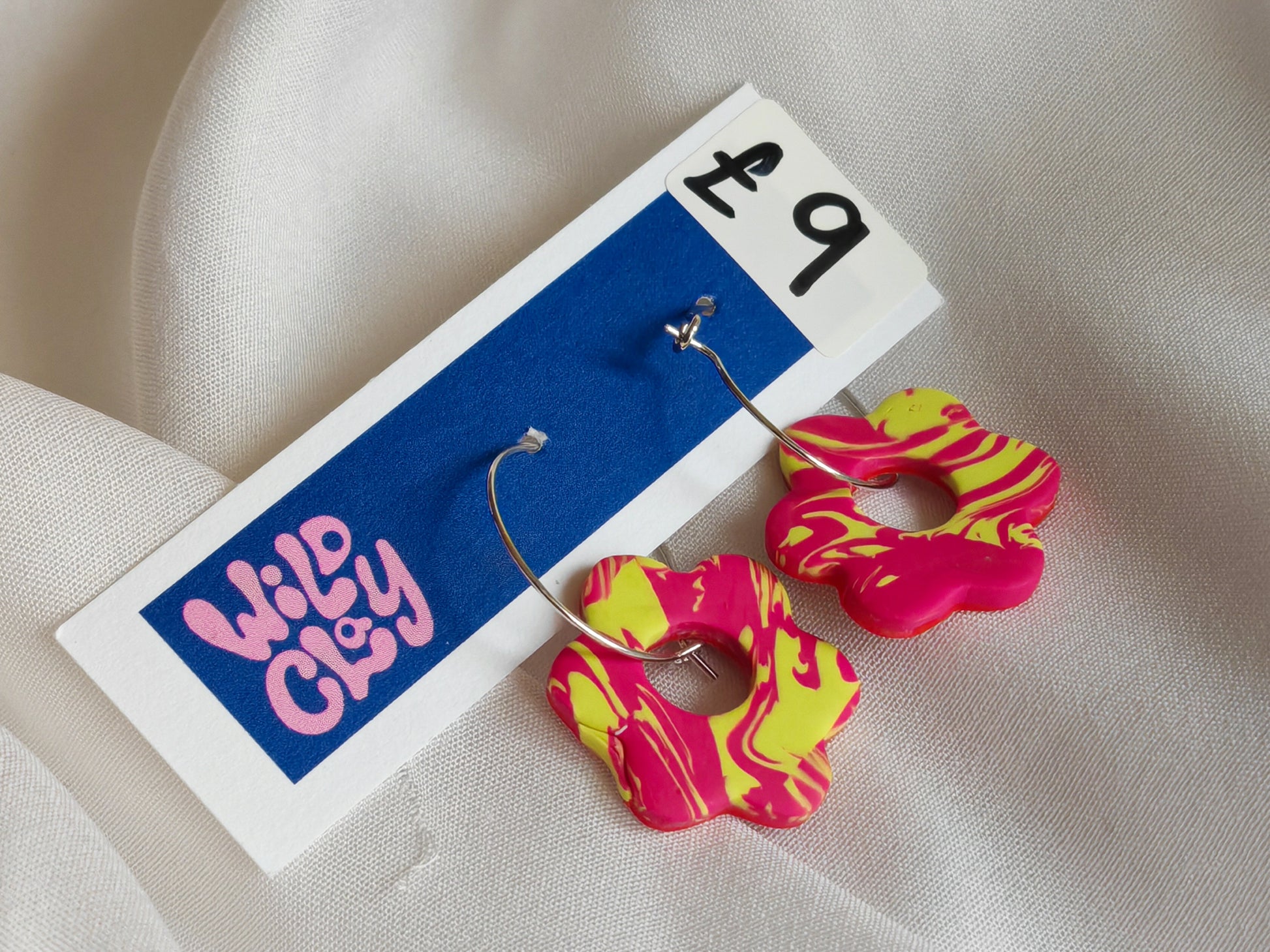 Flower hoops - yellow pink marble