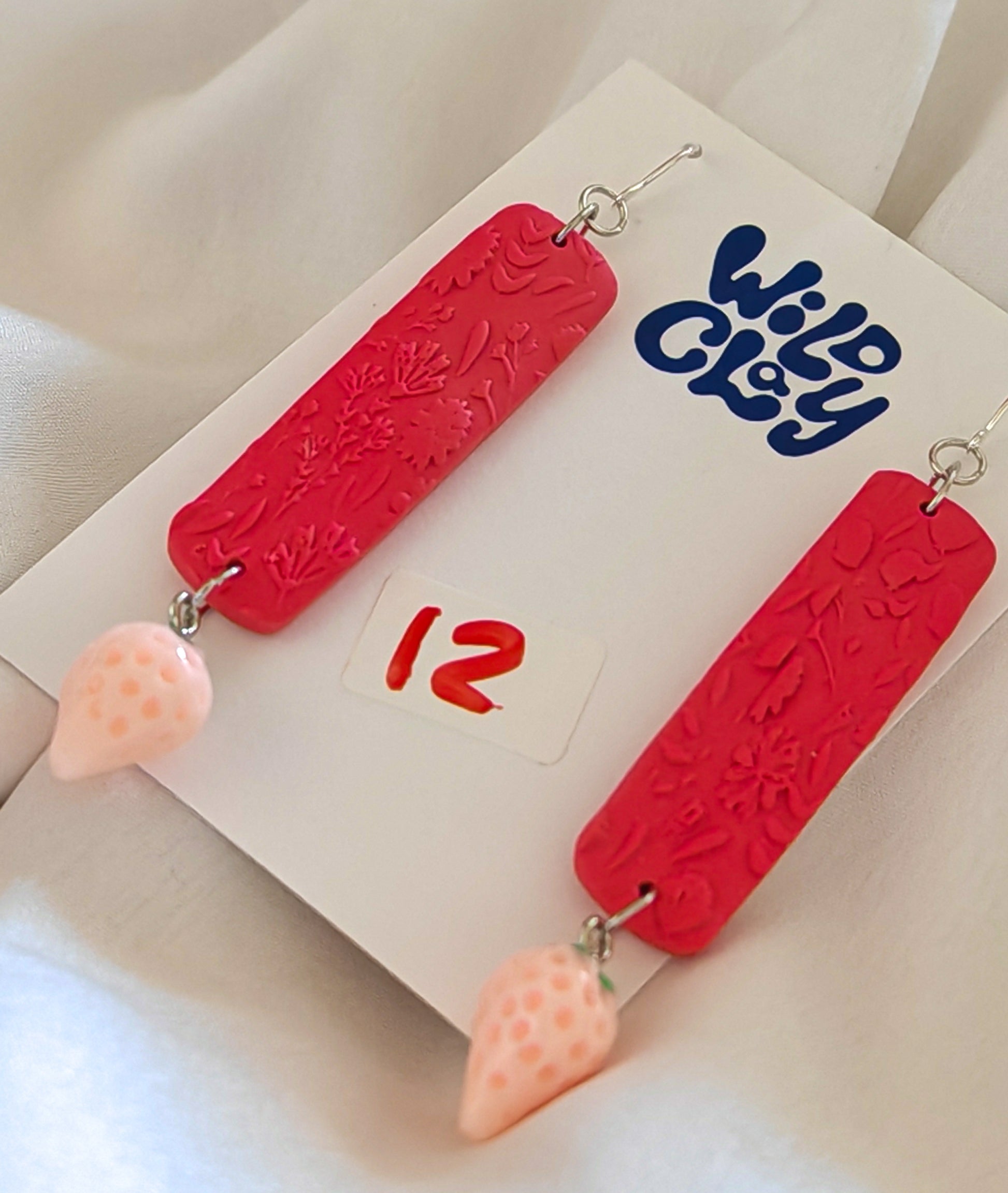 Pink rectangle earrings with mini strawberries